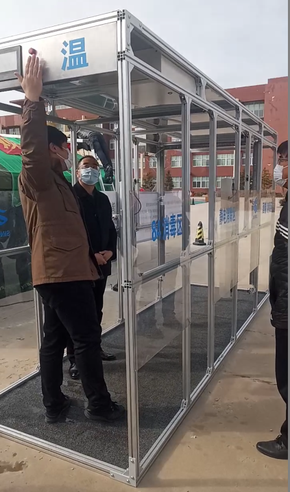 2020年3月6日下午2時,威海信諾威電子設(shè)備有限公司總經(jīng)理親自趕往“威海恒山實驗學(xué)?!?,對“測溫消毒一體式防護通道”的使用方法和技術(shù)要點進行現(xiàn)場講解;