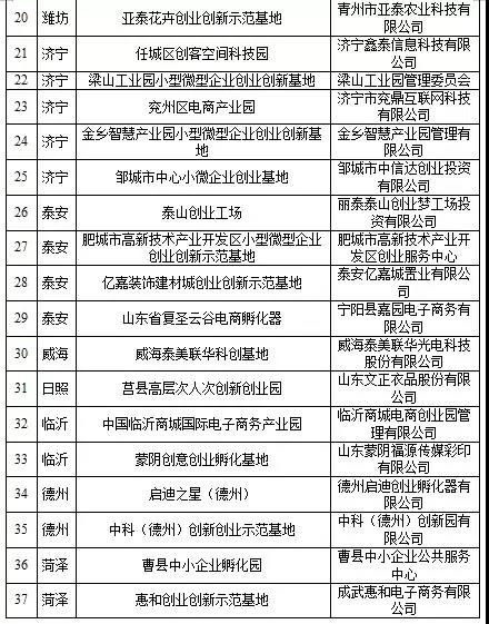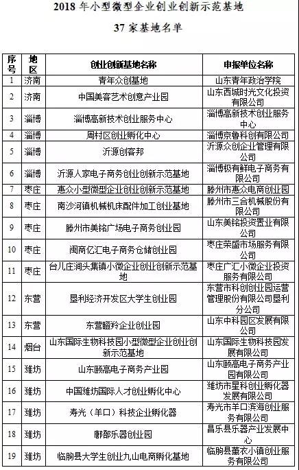 附件1:2018年度山東省小型微型企業(yè)創(chuàng)業(yè)創(chuàng)新示范基地名單