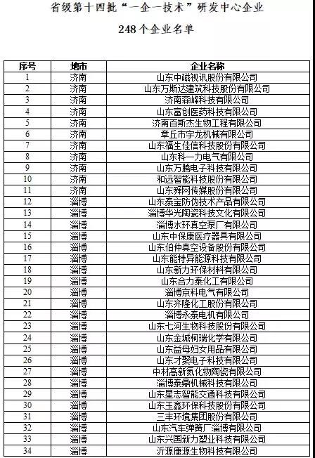 關(guān)于2018年度山東省小型微型企業(yè)創(chuàng)業(yè)創(chuàng)新示范基地和省級(jí)第十四批 “一企一技術(shù)”研發(fā)中心 第十二批“一企一技術(shù)”創(chuàng)新企業(yè)名單的公示